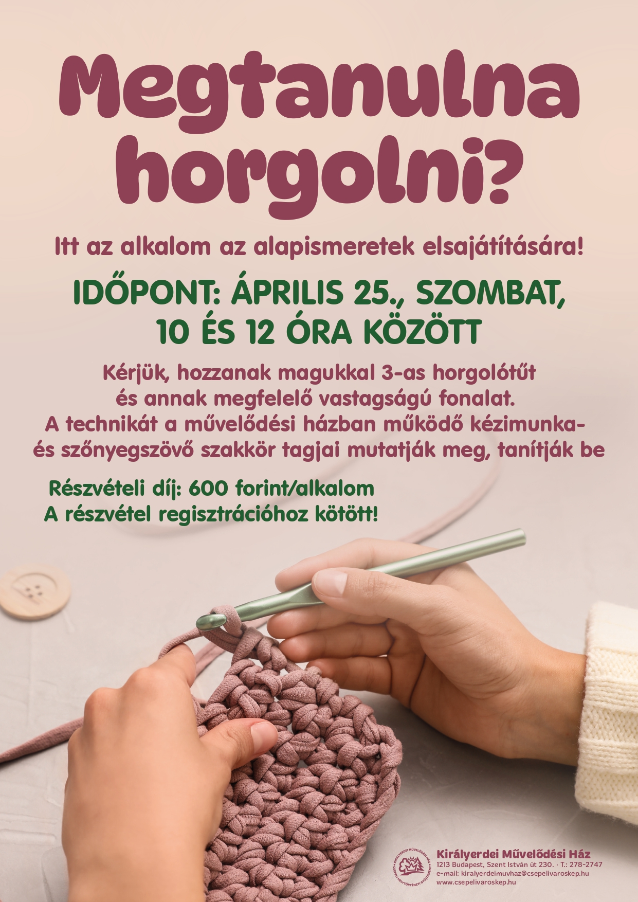 Megtanulna horgolni? – időpont: 2026.04.25. 10.00-12.00