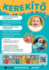1-3 éves korig várják a gyerekeket. Itt Kerekítő manó rövid bábjeleneteivel, ölbeli játékokkal és tornaszeres játéktérrel várják a családokat, mondóka és dalanyag 90 százalékban népi eredetű (40-45 perc).