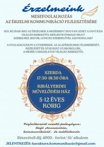 A foglalkozáson a gyermekek az alapérzelmek felismerését, kezelését és átadását gyakorolják, a mesék varázslatos világán keresztül!